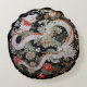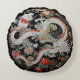 Dieses runde Kissen mit einem weißen Drachen im asiatischen Stil, umgeben von Blume auf schwarzem Hintergrund.