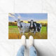 Diese Kuhputztür ist ein einladender Anblick für Ihre Gäste, wenn sie für einen saisonalen Herbstbesuch auftauchen. Es zeigt ein Bild eines schwarz-weißen Holstein Milchkühe-Paares in einer farbenfrohen Herbstweide mit bewölktem Himmel.