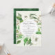 Friedliches Waldthema mit Eukalyptus-Blätter und Samen, Waldbodenelemente und weiße wilde Rose, die von Audrey Jeanne Roberts handbemalt wurden. Der Hintergrund ist mit einer tiefen, waldgrünen Aquarellwäsche versehen. Ein komplettes Set mit Brautdusche und Party für Paare steht ebenfalls zur Verfügung. Art Copyright Audrey Jeanne Roberts, alle Rechte vorbehalten.