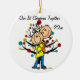 Eine hübsche runde Keramikandenkenverzierung kennzeichnet ein Strichmännchenpaar in der Liebe, die ihr erstes Weihnachten zusammen hat! Fügen Sie leicht Ihre Wahl des Textes und des Datums laufendem Jahr auf diesem niedlichen Strichmännchenpaar mit Weihnachtsbaum-Entwurfsverzierung hinzu. Macht eine große Geschenkidee!