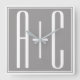 Paare Initails oder andere Texte | Weiß & Grau Quadratische Wanduhr