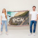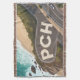This stylized aerial illustration captures the iconic Pacific Coast Highway as it curves along the coastline, blending natural beauty with graphic creativity. The winding road forms bold “PCH” lettering directly within the composition, guiding the eye through turquoise ocean waves, sunlit sand, and lush coastal hills. With a cinematic perspective, clean lines, and vibrant coastal tones, this artwork celebrates travel, movement, and the timeless allure of California’s most famous highway.