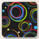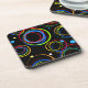 Schwarz und farbenfroh funky Circle Design Untersetzer Set von 6, entworfen von Sarah Trett.