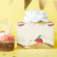 Packpapier mit einem lächelnden Apfelkuchencharakter und -äpfeln.