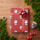 Design mit Illustration von niedlichem Panda mit dem Hut des Weihnachtsmanns, Weihnachtsfeiergestaltung für Kinder, Hintergrund mit nahtlosem roten Muster mit Sternen
