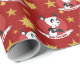 Weihnachtspapier mit Illustration eines niedlichen Pandakopfs mit dem Hut des Weihnachtsmanns, in rotem Kreis, mit gelben Sternen, Weihnachtsfeierdesign für Kinder, mit anpassbarer Textvorlage für Ihren Namen oder Ihre Botschaft; illustriert von Radka Kavalcova