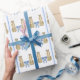 Dress up your gifts mit diesem schicken Packpapier mit spitzen Kästen und blauen Bögen. Ideal für jeden Anlass oder Urlaub.