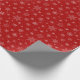 Umschlagpapier mit Schneeflocken bedruckt auf rotem Hintergrund.