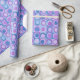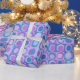 Verpackungspapier in Wiederholung von abstrakten Quadraten und Flecken, Blau- und Lavendelfarben