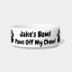 Diese lustige Hundefutter-Schüssel hat eine "Paws Off My Chow!"-Nachricht und zwei Hundepads drucken schwarz. Personalisieren Sie es mit dem Namen Ihres Hundes oder fügen Sie einen beliebigen Text hinzu. Hier auf einer weißen Keramik Hundeschüssel gezeigt, die in Größe mittler und groß. Pfosten, Schriftart, Farbe und vieles mehr lassen sich einfach anpassen. Schenken Sie Ihrem Hund oder einem Hundeelternteil ein tolles Geschenk!