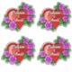 Packung mit 4 roten roten Herzstücken mit rosa Ros Aufkleber