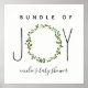 Ein Babyduschplakat mit einer Abbildung eines grünen Kranzes, der in den Satz "Freudenbündel" aufgenommen wurde. Personalisieren Sie den Namen. Die passende Babydusche und die passenden Pflegeartikel sind in der Jill's Paperie erhältlich.