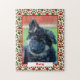 Ein niedliches und farbenfrohes Paw Print und Begleiter Foto personalisiert Rätsel. Das Design ist ein Hintergrund von hellroten und grünen gemusterten Pfotendrucken mit einem roten Rahmen, um Ihr Foto von Ihrem Haustier Welpen, Hund, Kätzchen, Katze, Guinea Schwein oder Kaninchen zu rahmen. Personalisieren Sie mit ihrem Namen, um dies zu einem einzigartigen Geschenk für Familie und Freunde mit Haustieren zu feiern besondere Tage, Jahrestage, Geburtstage, Feiertage und neue oder adoptiert Haustiere.