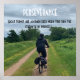 Ein Bild, das das Wesen der Entschlossenheit erfasst, einen männlichen Radfahrer zeigt, der durch die Landschaft auf von Gras gesäumten Wegen und Straßen reist, begleitet von einem aufregenden Zitat über das Festhalten und Entdecken innerer Kraft inmitten der Widrigkeiten.