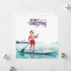 Ein helles und fröhliches, weihnachtliches Küstendesign mit Santa beim Stand-Up-Paddle-Surfen auf ruhigem, türkisfarbenem Meerwasser. Perfekt für Strandliebhaber, Surfer, Paddler und alle, die die Feiertage am Meer feiern.