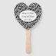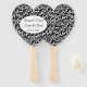 Dieser Paddellüfter wird mit einem schönen schwarz-weißen Damast-Druck mit Beispielnamen und Datum gezeigt. Passen Sie dieses Element an und ändern Sie Namen und Datum auf Ihren.