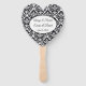 Dieser Paddellüfter wird mit einem schönen schwarz-weißen Damast-Druck mit Beispielnamen und Datum gezeigt. Passen Sie dieses Element an und ändern Sie Namen und Datum auf Ihren.