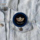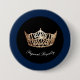 Button wird mit einem Foto von der Krone einer Goldkönigin gezeigt, Text: Pageant Royalty. Blauer Farbrahmen Navy Blauer Rahmen Passen Sie dieses Objekt an oder kaufen Sie, wie es ist.