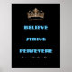 Sleek Black Hintergrund auf hochwertigem Plakatpapier macht ein feines Stück Förderungskunst. Eine glamouröse, juwelengeschmückte Krone über drei Worten: Glaube streben beharrlich zusammen mit einem Zitat von "Träume werden wahr". Kaufen Sie, wie es ist, oder personalisieren Sie weiter mit der Anpassungs-Taste oder fügen Sie einen Rahmen. Lizenziertes Bild