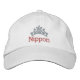 Weiß dargestellt mit einem bestickten Stich von roter Farbe von Text und silberne Krone. TEXT liest NIPPON. Diese Kappe hat nur Vordertext. Einstellbarer Rücken. Passen Sie dieses Objekt an und denken Sie daran, Ihre Hutfarbe auszuwählen.