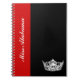 Schwarzes Notebook mit rotem Akzent und Lithopabdruck einer sichtbaren Königenkrone. Passen Sie dieses Element an, und ändern Sie den Text auf das, was Sie benötigen.