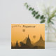 Auf dieser Postkarte finden Sie Pagoden und Ballons bei Sonnenuntergang in Old Bagan, Myanmar (ehemals Burma). Die archäologische Zone von Bagan, die 13 x 8 km um Old Bagan herum, bestehend aus Nyaung U im Norden und New Bagan im Süden, liegt in der weiten Weite der Ebenen in Oberbirma an der Kurve des Flusses Irrawaddy. Es befindet sich in einer aktiven Erdbebenzone. Im Jahr 1975 beschädigte ein großes Erdbeben viele Tempel, von denen einige irreparabel waren. Im Jahr 2016 zerstörte ein weiteres großes Erdbeben 400 Tempel. Die Archäologische Abteilung von Bagan leitete mithilfe der UNESCO eine Untersuchung und Wiederaufbaumaßnahmen ein. Es ist den Besuchern verboten, 33 beschädigte Tempel zu betreten. Die Touristen können jedoch eine spektakuläre Fahrt mit dem Heißluftballon über die Tempel von Bagan genießen. Genießen Sie Ihren neuen Pagodas und Balloons Sunset in Old Bagan Myanmar Postcard.