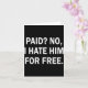 Paid No I Hate Him For - Funny Sarcasm Karte