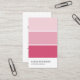Klug entworfene vertikale Visitenkarten imitieren das Aussehen einer Lackchipkarte, mit drei Rechtecken in Ober-Farbenschattierungen von Rot und Honeysuckle Rosa. Personalisieren Sie die Vorderseite mit Ihrem Namen und Titel, Beruf oder Firmennamen, und fügen Sie Ihre vollständigen Kontaktinformationen auf der Rückseite hinzu. Eine schicke Wahl für Innenarchitekten, Dekorateure und Maler. Um die Farbe der Farbchips zu ändern, klicken Sie auf "Anpassen" und wählen eine neue Hintergrundfarbe aus der Palette aus, oder geben Sie einen benutzerdefinierten Hex-Code ein. Farben werden automatisch in drei aufeinander abgestimmten Farbtönen aktualisiert.