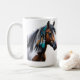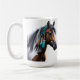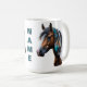 Eine schöne Bucht mit weißem Lackpferd mit Indianerperlen und farbenfrohen Federn, die in den Mann des Pferdes verblasst werden.