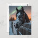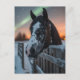 Ein niedliches Schwarz-Weiß-Pferd mit den Nordlichtern im Winterhimmel