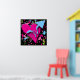 Dieses Retro-Poster hat einen farbenfrohen Spritzer mit einem rosa Herz und einem blauen Pfeil auf einem schwarzen Hintergrund.