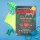 Coole Paintball-Party Einladung mit Farbstreuer auf dunklem Hintergrund in Rot, Blau, Grün und Gelb.