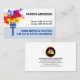 Die weiße und blaue Abdeckung wird durch einen farbenfrohen Spritzer (Schälfarbe) hervorgehoben, der mit einem blauen Pinsel überstrichen wird. Oben finden Sie Ihren prestigeträchtigen Namen und Ihre Kontaktdaten. In der blauen Ebene ist eine Slogan-Beschriftung Option, die Sie ändern können, um Anzug Ihre eigenen Werbebedürfnisse. Auf der Rückseite, in einer weißen Abdeckung, oben ist ein goldenes "Zuhause mit einem Farbstreifen-Ventilator" Logo, das Sie verwenden können. Danach folgen Ihr Name, die Kontaktdaten und ein Slogan, um Ihre Dienste bekannt zu machen. Ein kreatives Design für Gebäude-, Handwerker- und Malereiunternehmen.