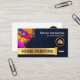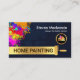 Ein farbenfroher Spritzer erscheint auf einer schälenden Farbwand. Die goldene Bürste ist im Begriff zu arbeiten und enthält den Firmennamen "ZUHAUSE PAINTING", den Sie ändern können. Oben ist Ihr Prestigename, eine Slogan-Beschriftung, die Sie ändern können, und das goldene "Zuhause lackfan" Logo, das Sie verwenden können. Hinter einem weißen Cover sind Details rechts. Oben steht das goldene Logo, gefolgt von seinem Firmennamen, Kontaktdaten und einer Slogan-Beschriftung. Diese Karte wäre ideal für Maler. #painting #painting services #paintingservices #paintingtrage #houseMaler #handyman #tratratrading #buildingContractor #remodeling #homerepair
