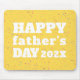 Der glückliche Vatertag und das Jahr ist in fett weißem Text geschrieben. Es Pop wirklich gegen ein Farbmuster Spritzer auf Senf gelb.