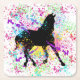 Schwarzes Pferd, umgeben von farbenfrohen Spritzern
