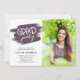 Diese grad Party Einladung bietet ein einfaches Design und ist mit dunklen lila Pinselstrichen hervorgehoben. Personalisieren Sie diese Foto-Party Einladung mit Ihrem Lieblings-Senior-Bild.