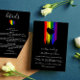 Charmant 2 in 1 GB Hochzeitseinladung mit Regenbogenflagge gezeichnet mit unordentlichen Schlagstöcken und mit schwarzem Herz auf schwarzem Hintergrund verziert. Fügen Sie Ihre Hochzeitsdetails auf der Rückseite unter einer Regenbogenfarbe gefüllt Herz.