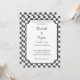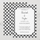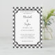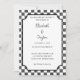 My black painted checkerboard pattern is the backdrop for these custom wedding invitations with black watercolor squares arranged in a checkered grid. Your custom wedding details appear in the center in black lettering.