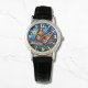 Painted Butterfly Starry Night Sky Elegant Womans Watches features a trendy colorful painted butterfly with the moon and stars in the background. Created by Evco Studio www.zazzle.com/store/evcostudio