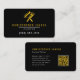 Help your painting business stand out from the crowd with this bold, eye-catching black and yellow business card featuring rounded corners. The black background contrasts with the yellow crossed paint roller and paint brush logo and the yellow and white text to highlight your business name, contact information and other details. A QR code on the back takes customers and clients to your website.