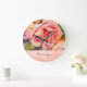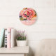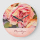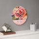 Painterly Pink Roses on Damask Mit Monogramm Große Wanduhr