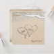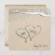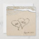 ein Paar Herzen im Strand Sand mit lauschigen Surfen für Hochzeiten einladen. Namen können angepasst werden.