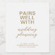 Minimalistisches "Pairs Well With Wedding Planning" Verlobung Weinflaschenlabel in schlichter Weiß- und Goldfarbe mit modernem und elegantem handgeschriebenem Stil. Passen Sie Ihre Wünsche mit Anlass, Paarnamen und kurzer kurzer Nachricht an. Ändern Sie die Hintergrundfarbe und/oder Textfarbe in den Anzug Ihrer Vorliebe. Ideal für Verlobungen.