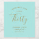 Minimalistisches "Pairs well with" personalisiertes Geburtstagsweinflaschenlabel in Aquablau und Gold mit modernem, schicken und elegantem handgeschriebenem Stil. Der gesamte Text ist anpassbar. Personalisieren Sie mit Alter, Name und Geburtsjahr. Perfekt für Geburtstagsgeschenke oder Gastgeschenk.