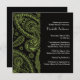 Beginnen Sie Ihre Veranstaltung mit unserer Trendy & Modern Bridal Dusche Einladung mit einem hübschen grünen Pisley Print-Set auf einem schwarzen viereckigen Hintergrund. Anpassen Sie einfach unsere Einladung mit Ihren Hochzeitsinformationen und Sie sind alle Set zu gehen. Verfügbar in unserem Shop www.celebrateitinvites.com in anderen Farbthemen
