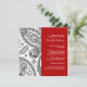 Beginnen Sie Ihre Veranstaltung mit unserer Trendy & Modern Bridal Dusche Einladung mit einem schwarz-weißen Pisley Print Set auf einem roten viereckigen Hintergrund. Anpassen Sie einfach unsere Einladung mit Ihren Hochzeitsinformationen und Sie sind alle Set zu gehen. Verfügbar in unserem Shop www.celebrateitinvites.com in anderen Farbthemen