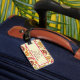 Ein Gepäckanhänger, der einen Paisley-Entwurf kennzeichnet. Personifizieren Sie den Text auf dem bloßen Bereich des Fronteninneres, der im Rosa umrissen wird.
