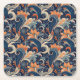 Navy and orange paisley with honeysuckle shapes on coaster. Dinner party ready.