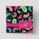 Sie werden dieses kühne und dramatische Abzeichen-Button mit personalisiertem Namen bei Ihren Veranstaltungen mit einem whimsy paisley Design tragen und personalisiert mit Ihrem Monogramm, Initialen oder Namen. Die kühnen Farben dieses trendigen Paisley Design Pops auf schwarzem Hintergrund mit einem leuchtend fuchsienrosa Streifen und Emblem für Personalisierung. Helle, frische, moderne Paisleys bilden ein wunderschönes künstlerisches Design, das inspirierende Worte von Liebe, Hoffnung, Glauben, Inspirier, Tschechisch, Be Happy, Dream, und Live im Hintergrund zwischen den Paisleys beinhaltet. Diese von Phyllis Dobbs entworfene Kollektion Mod Paisley verwendet die Farbtöne aquamarin, türkisblau, Limettengrün, Wein, Gelb, Fuchsien und Orange, um das traditionelle und beliebte Paisleymotiv zu genießen. Das Paisleymotiv ist zeitlos ansprechend, aber diese originelle Kunst ist zeitgenössisch und zugleich modern. Vollständig anpassbar für Personalisierung mit eigenen Worten, um Ihre eigene Nachricht hinzuzufügen.
